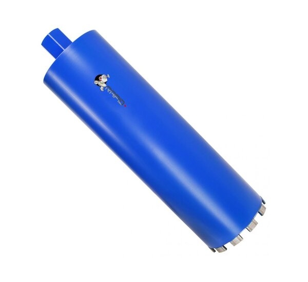Vrták nabízí průměr 132 mm, celkovou délku 470 mm a pracovní délku 420 mm. S 11 diamantovými segmenty a 10 mm vysokou diamantovou vrstvou lze dosáhnout