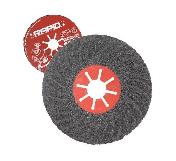 Fibrový kotouč je vyroben ze skelných vláken a speciálním nátěrem je na něj aplikováno množství vrstev karbidu křemíku vázaných díky syntetické pryskyřic, která je odolná vůči mechanickému namáhání. Lze ho použít i za mokra. Vyznačuje se vysokou abrazivní silou a vysokou efektivitou práce. Používá se v předběžném zpracování, k čištění a leštění dlaždic ze žuly pískovce, kamene, keramiky a také ke zkosení hran.