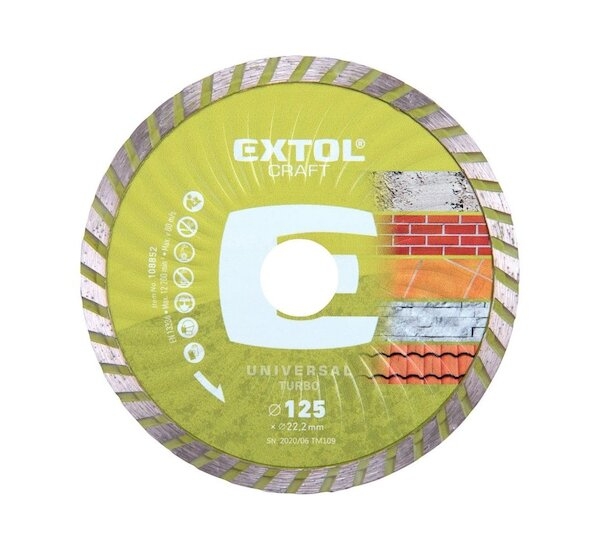 Kotouč diamantový řezný turbo, 125x22,2mm, suché i mokré řezání, EXTOL CRAFT