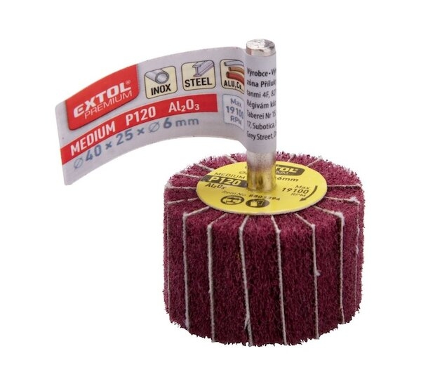 Kotouč z korundového brusného rouna na stopce, o40x25x6mm EXTOL PREMIUM
