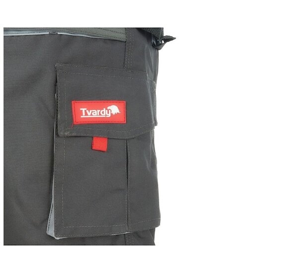 Kalhoty TVARDY mají četné kapsy, včetně těch na zip, takže do nich můžete uložit potřebné nářadí a doplňky. Kalhoty mají navíc trojité švy, šité silnou nití, což zvyšuje jejich pevnost a odolnost. Pracovní kalhoty mají nastavitelný pas díky gumě a poutkům na opasek. Velké množství suchých zipů na místech zvláště vystavených rozmotání zajišťuje delší životnost kalhot.
