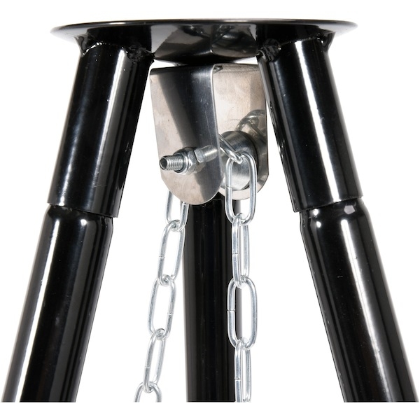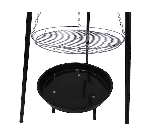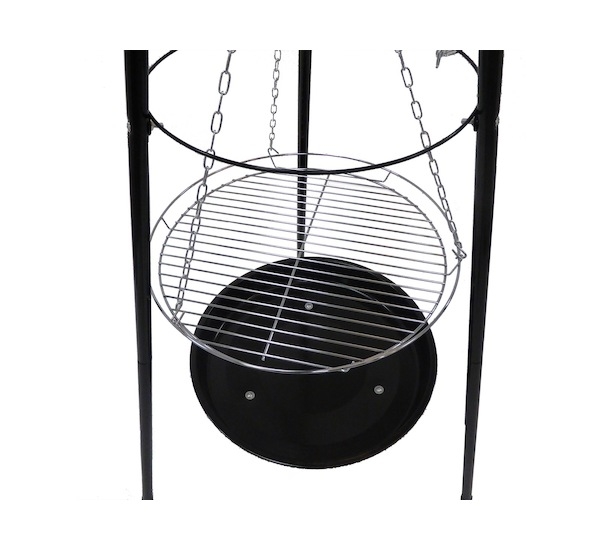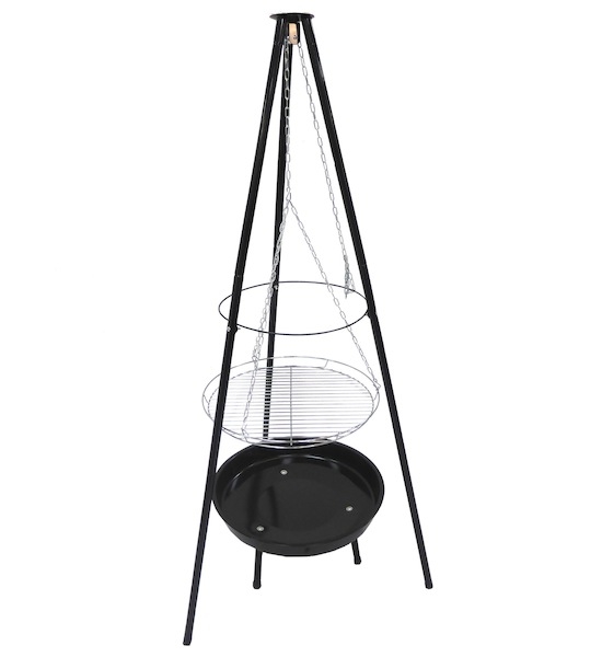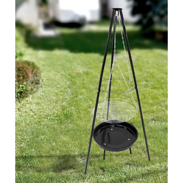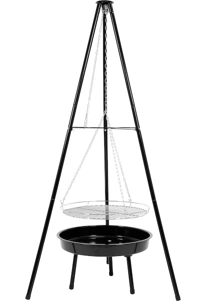 Elegantní gril se speciálním zavěšením na tripodu, ideální řešení pro lidi, kteří nemají na zahradě vyhrazené místo pro oheň, ale chtějí si dopřát kempovou atmosféru.
