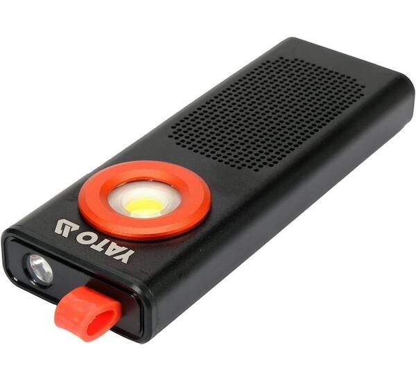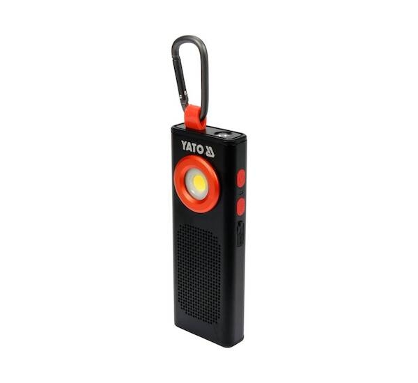 Odolná, hliníková svítilna Yato vybavená Osram diodou, která poskytuje světlo o síle 500 lm a dosahu 28 m. Tři provozní režimy umožňují přizpůsobit svícení vykonávaným činnostem a úrovni nabití baterie. Je vybaven 3,7V 2000 mAh lithium-polymerovou baterií, poskytne až 5 hodin provozu a dokáže nabíjet další zařízení po dobu 20 minut - funkce powerbanky. Zařízení lze propojit např. s telefonem přes bluetooth a následně přehrávat oblíbenou hudbu díky kvalitnímu reproduktoru.