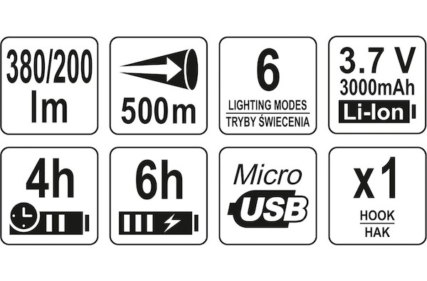Lampa montážní CREE LED, bezpřívodová, 3,7V Li-ion, 6 režimů, 380lm