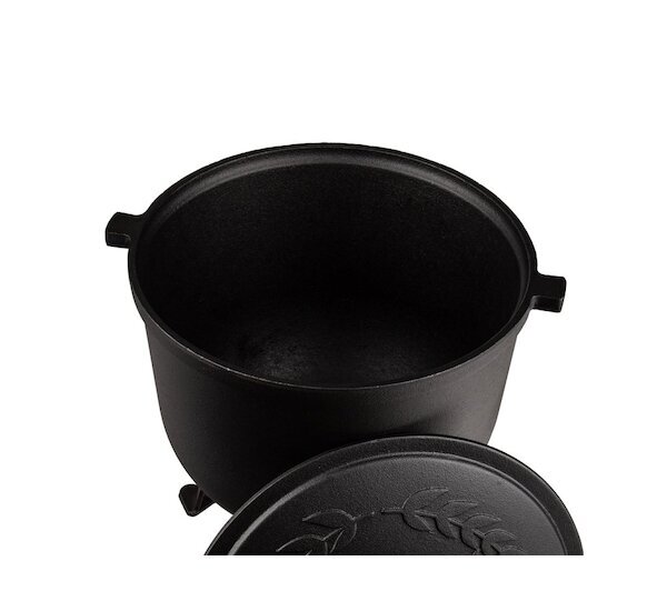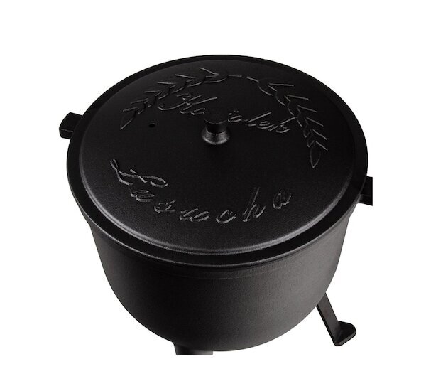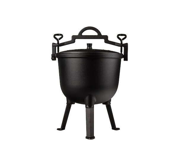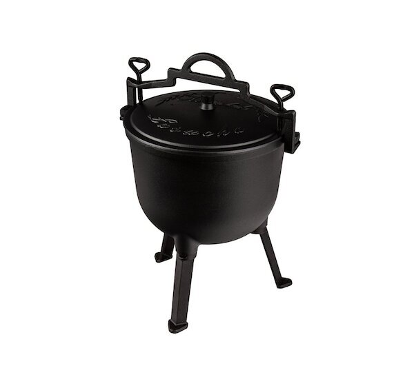 Litinový kotlík s objemem 10 litrů je robustní nádoba pro vaření nad otevřeným ohněm. Kombinace pevné litinové konstrukce s praktickými odnímacími nohami vytváří všestranné náčiní pro outdoorové vaření i zahradní akce.