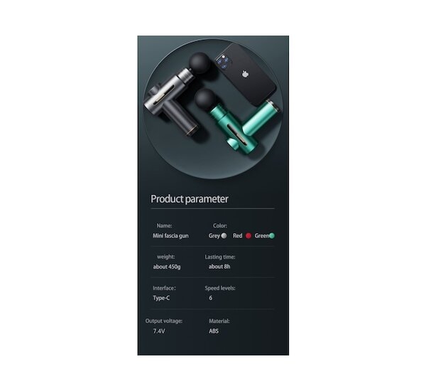 Masážní pistole GLOX750G je ideálním společníkem pro každého, kdo hledá efektivní a kompaktní řešení pro úlevu od svalového napětí a regeneraci po fyzické aktivitě. Přístroj nabízí několik úrovní intenzity a výměnných nástavců pro cílenou masáž různých svalových skupin. Díky lehké konstrukci je ideální pro použití doma, v kanceláři i na cestách.