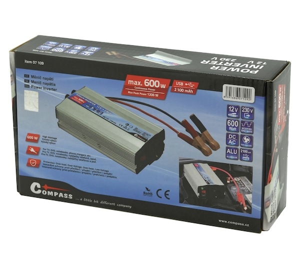 Vysoce výkonný měnič, určený pro univerzální použití, kdy je potřeba připojit síťové spotřebiče určené pro 230V/50Hz v místech s rozvodem 12 V=.