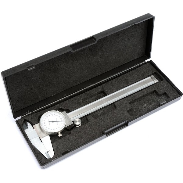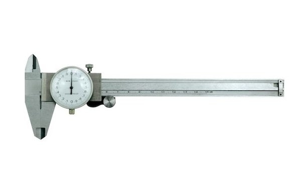 Posuvné měřítko vyrobeno z nerezové oceli s analogovým odečtem.