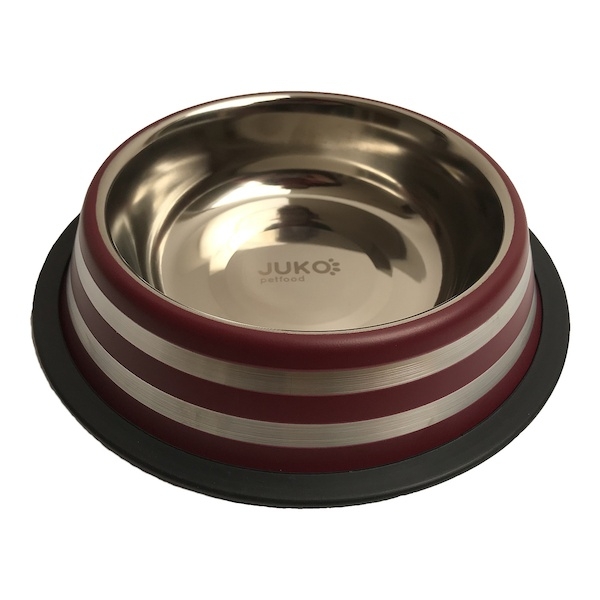 Nerezová miska, opatřená silikonovým kroužkem, je více stabilní a neklouže po podlaze.