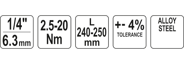 Momentový klíč Yato s pracovním rozsahem 2,5 - 20 Nm.
