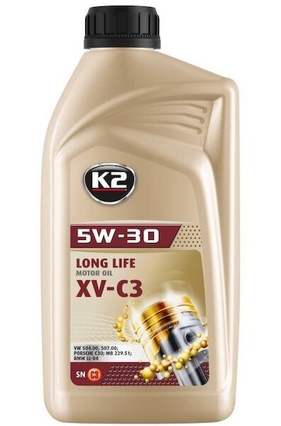 K2 TEXAR XV-C3 5W-30, 1 l je nejpokročilejší, plně syntetický motorový olej Long Life. Poskytuje optimální ochranu motoru a zároveň snižuje spotřebu paliva a oleje. Určeno pro benzínové a naftové motory s přímým vstřikováním nebo bez něj a vybavené filtrem pevných částic a třícestnými katalyzátory. Vyvinut pro prodloužení životnosti a zachování účinnosti systému snižování emisí výfukových plynů – DPF filtrů.