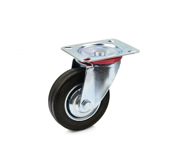 Otočné kolo s přírubou o průměru 125 mm. Jádro kola a ráfek jsou vyrobeny z oceli, pneumatika je vyrobena z kvalitní gumy, která zlepšuje přilnavost kola a zabraňuje poškrábání povrchu.