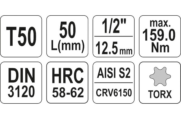 Profesionální šestihranný bit Torx pro 1/2" ráčnu.