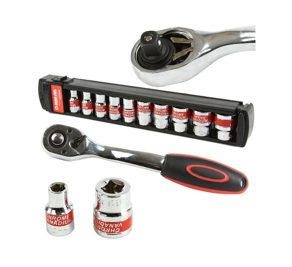 Profesionální sada šestihranných nástrčných hlavic 1/2″. Sada obsahuje 1/2" nástrčné hlavice a ráčnu. Hlavice jsou vyrobeny z vysoce kvalitní chrom-vanadiové oceli.