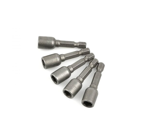 Šestihranné magnetické nástrčné klíče s uchycením hex 1/4” v sadě 5 ks. Uvnitř uzávěru mají silný magnet, který zabraňuje vyklouznutí šroubů. Vhodné pro použití v aku šroubovácích nebo vrtačkách.