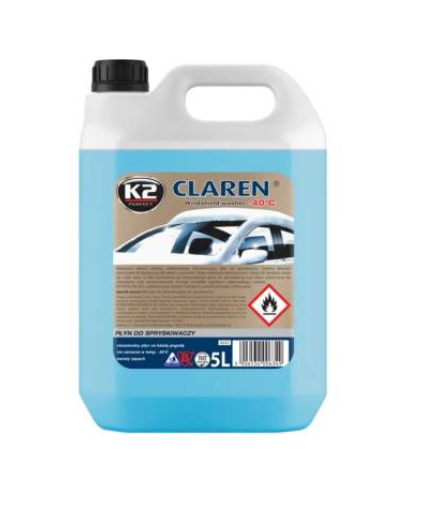 K2 CLAREN -40°C je naprosto bezpečný pro laky, pryžové a plastové prvky, i pro nejmodernější polykarbonátové světlomety. Chrání stěrače před ztrátou flexibility. Lze použít s jakýmkoli typem ostřikovací trysky. Účinně je chrání před zamrznutím.
