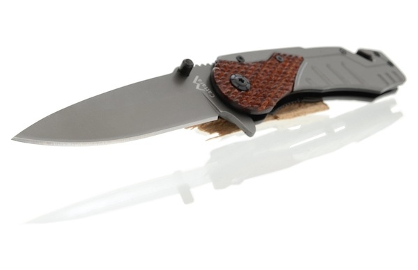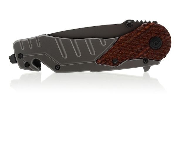 Střenky rukojeti jsou z jedné strany doplněny o dřevěnou, drážkovanou oporu palce a druhá strana je vybavena klipsem k přichycení za okraj kapsy, opasek apod. Střenky jsou ergonomicky tvarovány a kvalitně zpracovány z oceli 420J1 potažené titanem a v zadní části ji doplňují břit pro řezání provazů, nebo plastových pásek a ocelový klín pro různé využití, například rozbíjení ořechů, kokosu apod.