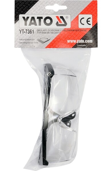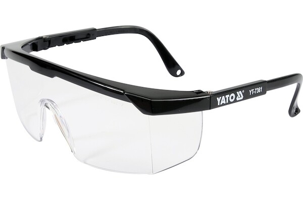 Ochranné brýle z polykarbonátu, s délkově nastavitelnými ramínky, které lze navíc pomocí otvorů na koncích opatřit např. gumičkou pro zavěšení na krk. Brýle jsou určeny k ochraně očí, při ručním i strojním obrábění kovů, dřeva, plastů, keramiky, atd. Snáší dopad částic s hmotností 86 g při rychlosti 45 m / s. Splňují požadavky pro normu osobních prostředků k ochraně očí EN 166. Žádné, nebo uživatelem nerozpoznatelné zkreslení obrazu splňuje požadavky optické třídy 1. Brýle jsou navíc opatřeny filtrem, který chrání proti UV záření 2C-1,2.
