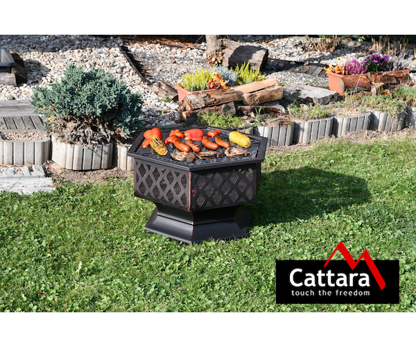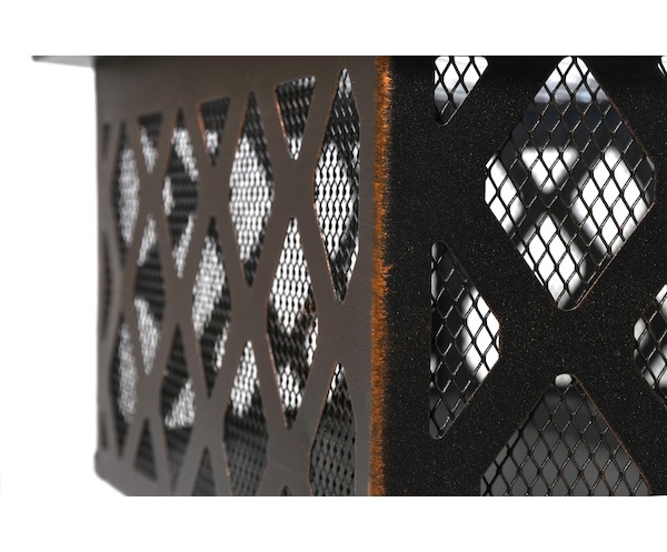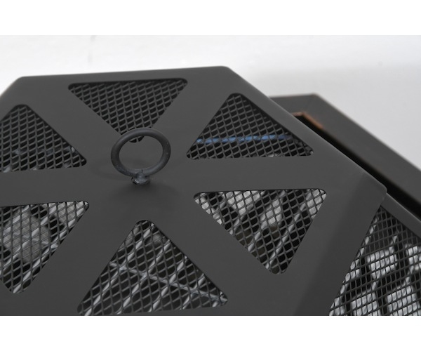 Konstrukce ohniště je vyrobena z kvalitní oceli s vysokoteplotním černým/měděným nátěrem s patinou. Pro grilování je ohniště opatřeno ocelovým roštem o rozměrech 61x53 cm.