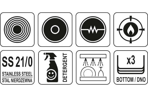 Speciální vložka feromagnetická ve spodní části umožňuje použít YATO pánve na jakýkoliv typ sporáku: