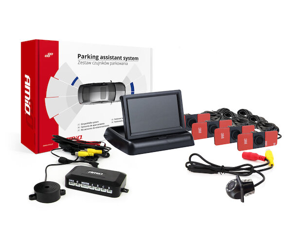 Parkovací asistent TFT02 4,3" s kamerou HD-305-LED 4 senzory černá vnitřní