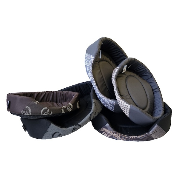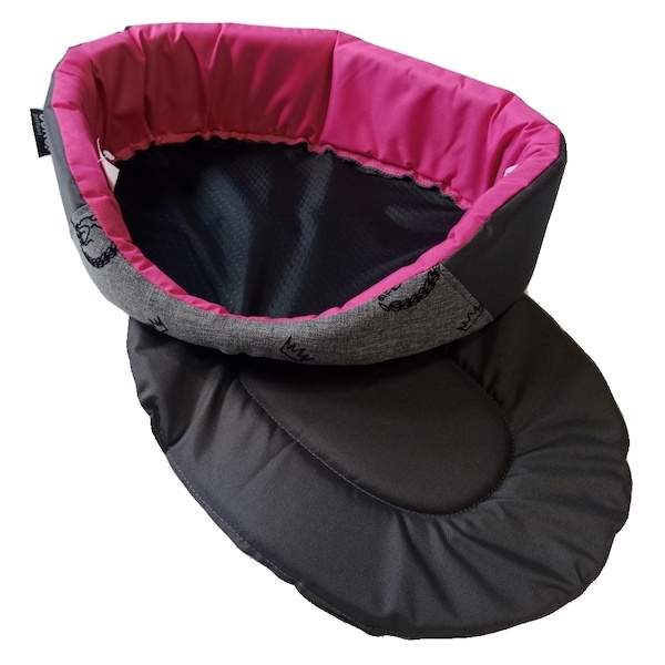 Látkový pelíšek pro psy ve tvaru oválu s vyjímatelnou podložkou.