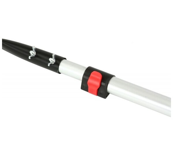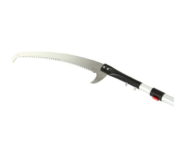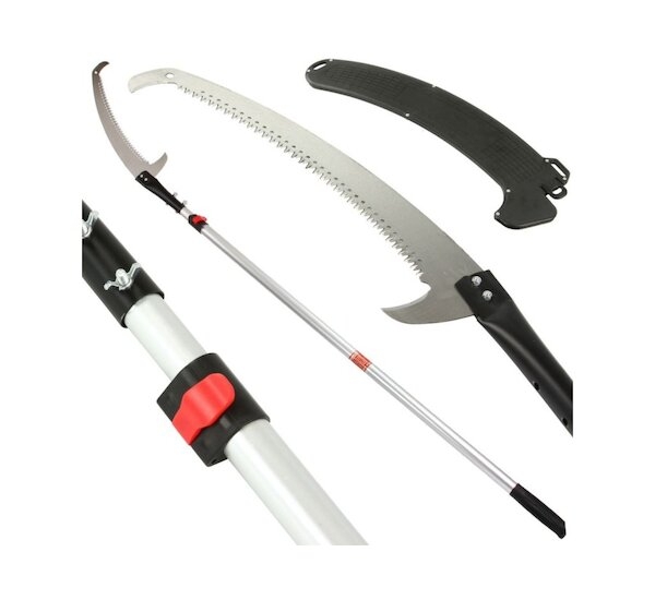 Pevná pila s hákem na teleskopické násadě je mimořádně praktická pomůcka, nenahraditelná zejména při řezání silnějších větví a tenkých větviček. Pilka čepel z kalené oceli SK5 a teleskopickou rukojeť, kterou lze nastavit od 130 cm do 245 cm. Celková nastavitelná délka včetně pilky je 181 - 293 cm