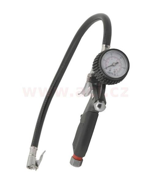Manometr s max. pracovním tlakem 6 bar a 40 cm dlouhá hadice.