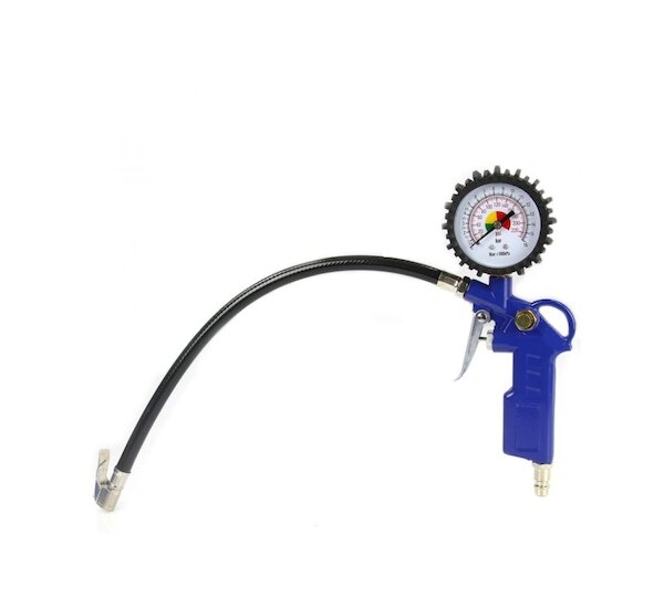 - Nafukovací pistole s manometrem je ideální pro nahuštění a kontrolu tlaku v pneumatikách. Je vybavena odvzdušňovacím ventilem.