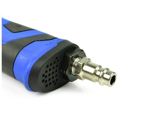Kompletní sada umožňující okamžité zahájení práce bez nutnosti nákupu příslušenství. V sadě jsou čtyři sekáče, rychlospojka 1/4" a pružina, která umožňuje bezpečnou práci s kladivem. Pro pohodlnější práci a lepší úchop má protiskluzovou pogumovanou rukojeť.