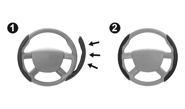 Segmentový potah se snadno nasazuje a zajišťuje pevný úchop. Jeho umístění zabraňuje opotřebení volantu přesně v místě kde je nejčastěji držen.