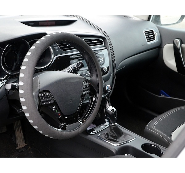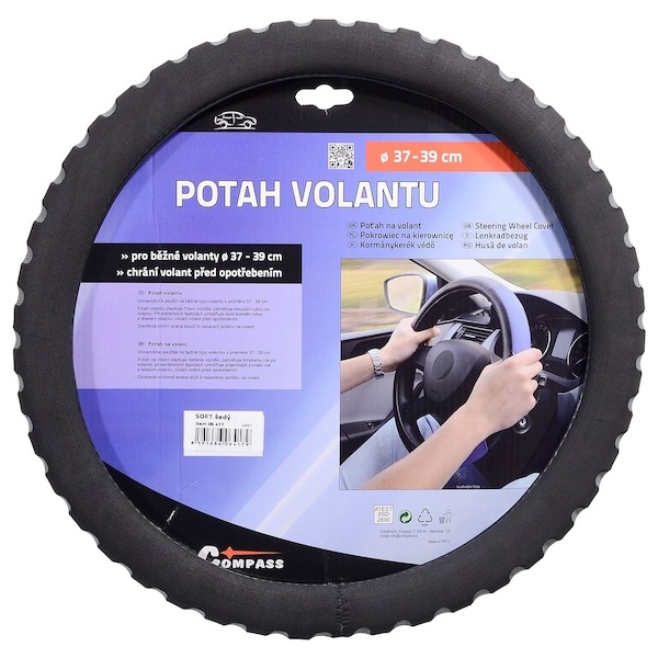 Pěnový potah určený k nasazení na volant o průměru 37-39cm. Příjemný do ruky. Barva černá s šedými prolisy.