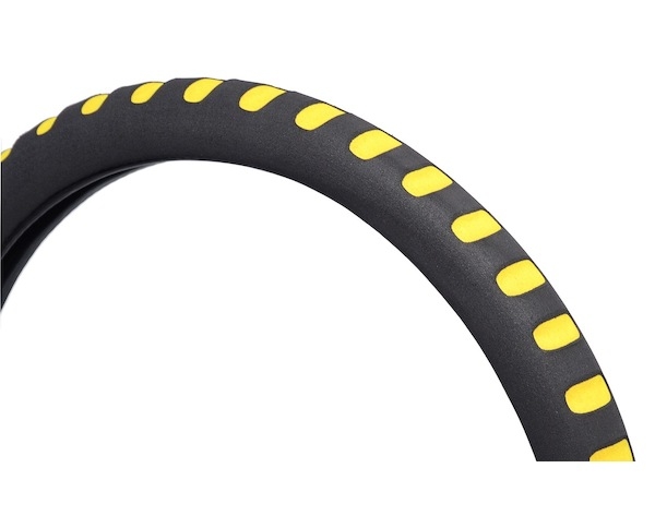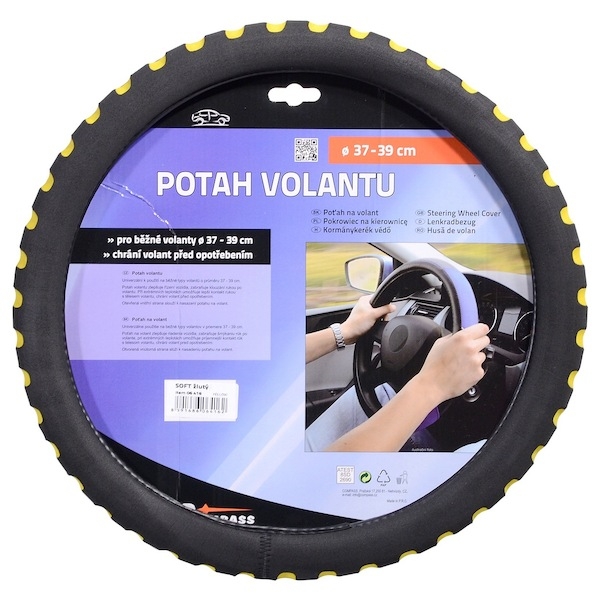 Pěnový potah určený k nasazení na volant o průměru 37-39cm. Příjemný do ruky. Barva černá se žlutými prolisy.