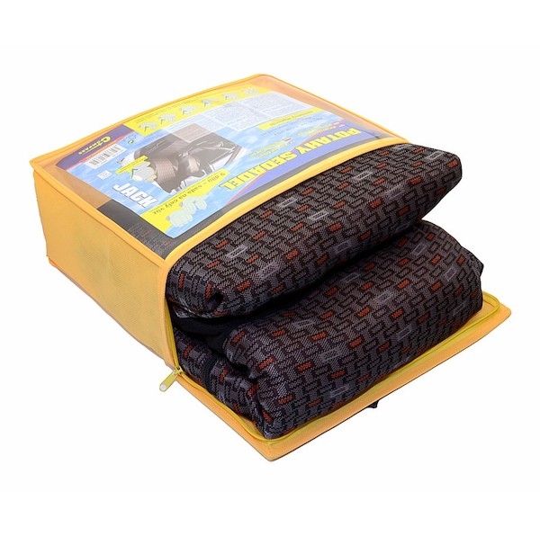 Potahy sedadel "JACK", sada na celý vůz. Potah je vyroben ze zpevněného podšitého materiálu v celé ploše, lze připevnit na většinu běžně používaných automobilových sedadel. Potah lze použít na sedadlech, která mají zabudovaný boční airbag přímo v opěradle předních sedadel. Balení obsahuje potah na přední sedadlo (2x), zadní sedák (celý), zadní opěradlo (pomocí zipu dělitelné na 3 díly), opěrku hlavy (5x). Díky zipům na zadní opěradlová části je možné potahy použít i na vozy s dělenými zadními sedadly a opěradla sklápět bez nutnosti sejmutí potahu.