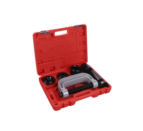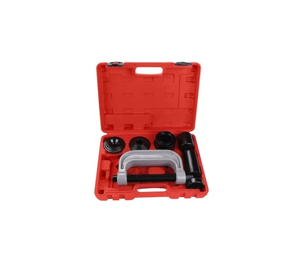 Přípravek KD12508 je sada nástrojů určená pro efektivní demontáž a montáž pouzder a čepů ramen v automobilovém podvozku. Tento univerzální nástroj je ideální pro použití v autoservisech i domácích dílnách, kde usnadňuje práci na zavěšení kol bez nutnosti rozsáhlé demontáže dalších částí vozidla. Sada obsahuje celkem 9 prvků, které zajišťují širokou kompatibilitu s různými typy vozidel. Díky své robustní konstrukci a promyšlenému designu je tento přípravek nepostradatelným pomocníkem při údržbě a opravách podvozkových systémů.