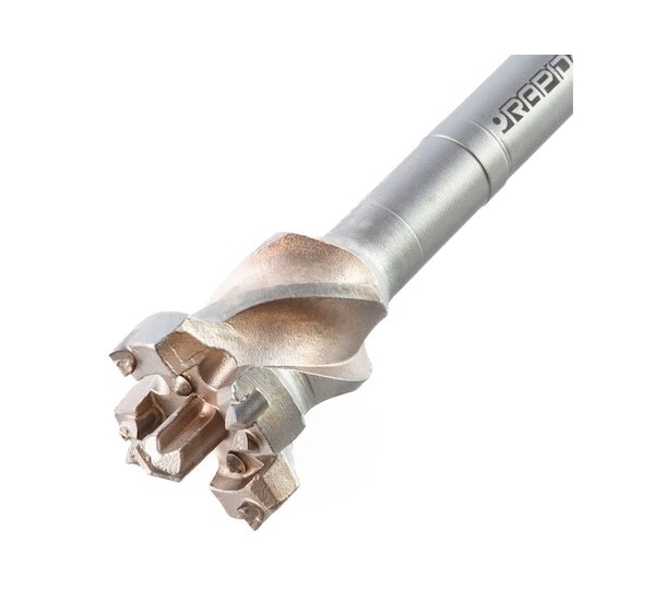 Odolný karbid wolframu s nejjemnějšími zrny. Dlouhá životnost a pevnost. Vakuově pájené a kalené pro zvýšenou životnost. Zaručuje rychlé proražení vrtání a dobrý úběr materiálu Pro průrazové vrtání. Vrtací korunky s příklepem SDS-max. Pro průrazové vrtání o průměrech od 45 do 65 mm do betonu, zdiva, silikátových cihel, např. pro spojování vnějších kabelů nebo trubek Jednodílné nástroje se zvonovitou hlavou, asymetricky umístěnými tvrdokovovými kolíky a tvrdokovovým středovým hrotem.
