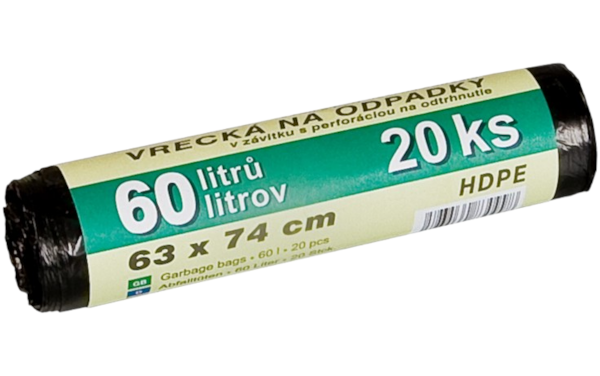 Pytle na odpad HDPE 60l, 20ks/role, 63x74cm, černé