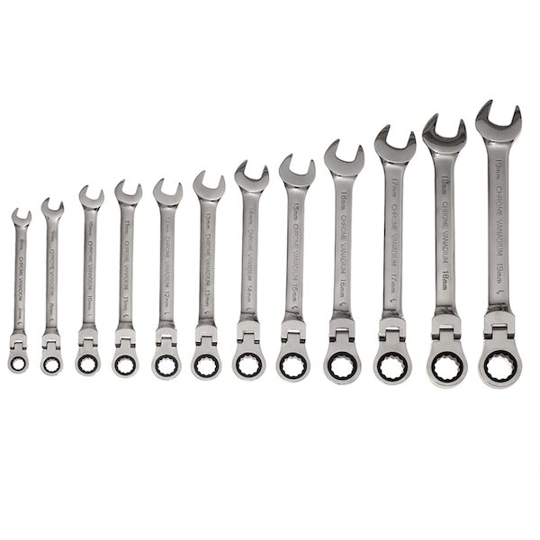 Ráčnové očkoploché klíče 12 ks s kloubem, 8-19 mm, CrV TAGRED