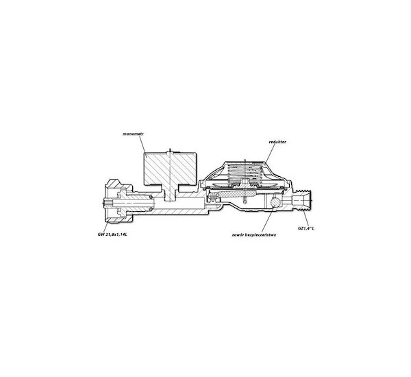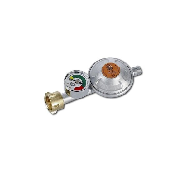 Regulátor je vybaven manometrem, který ukazuje úroveň plynu v tlakové lahvi a bezpečnostním ventilem, který vypne přívod plynu, pokud spotřebič vykazuje větší spotřebu než na jakou je regulátor nastaven (např. při destrukci přívodní hadice).