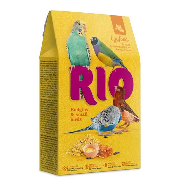 Rio vaječná směs pro andulky a malé ptáky se vyrábí z celých vajec a obsahuje přídavek medu, vitaminů a minerálních látek. Kombinace biotinu a aminokyselin pomáhá ptákům udržovat zdravé peří a optimálně přepeřovat. RIO vaječné krmivo je bohaté na životně důležité vitaminy a další cenné živiny. Směs je nepostradatelným doplňkem v období růstu, přepeřování, chovu a kdykoli potřebuje oslabený opeřenec zajistit lepší výživu.