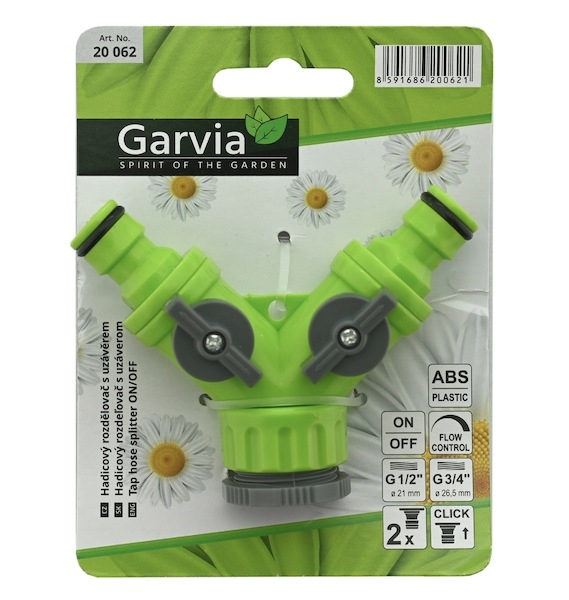 Rozdělovač „Y“ umožňuje připojení dvou zahradních hadic opatřených rychlospojkou CLICK k jednomu kohoutku (G1/2" nebo G3/4") a poskytuje individuální kontrolu průtoku vody.