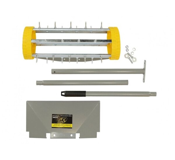 Provzdušňovač se skládá z válce s hroty, vodicích koleček, krytu a výklopné třídílné rukojeti.