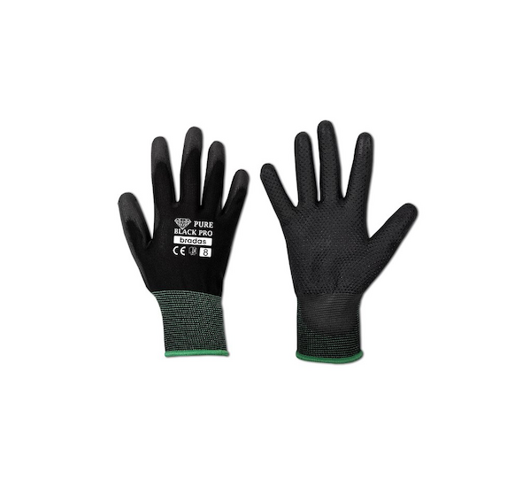 Ochranné rukavice, polyuretanové, 10" PURE BLACK PRO