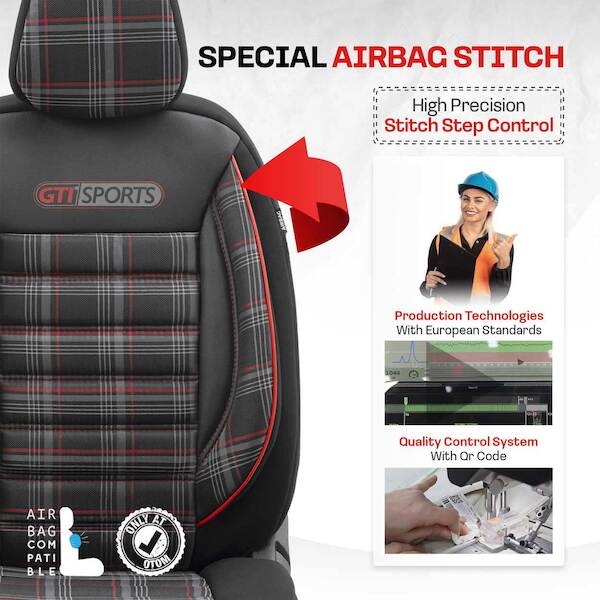 Standardní potahy mají certifikovaný standardní šev AIRBAG, díky čemuž jsou vhodné jak pro auta s bočními airbagy v sedadlech, tak i pro standardní sedadla. Díky použití speciálního švu pokrývají sedadla zcela, aniž by rušila práci AIRBAGŮ.