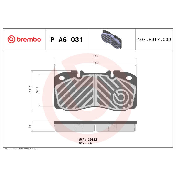 Sada brzdových destiček, kotoučová brzda BREMBO P A6 031
