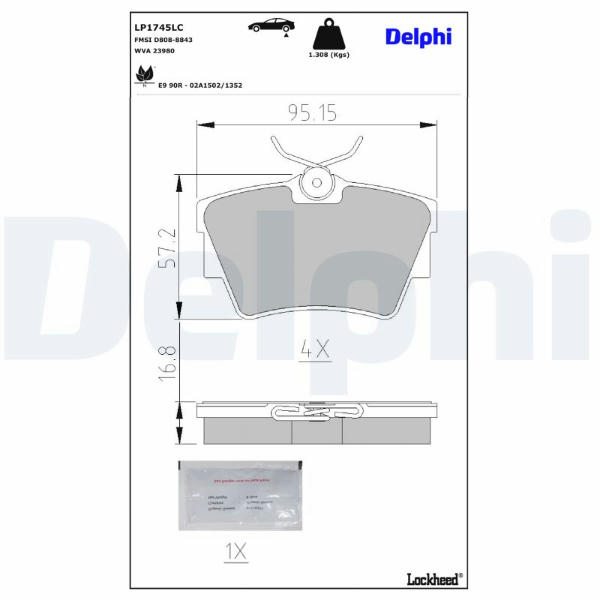Sada brzdových destiček, kotoučová brzda DELPHI LP1745LC