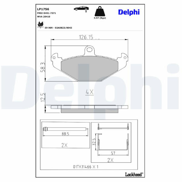 Sada brzdových destiček, kotoučová brzda DELPHI LP1756