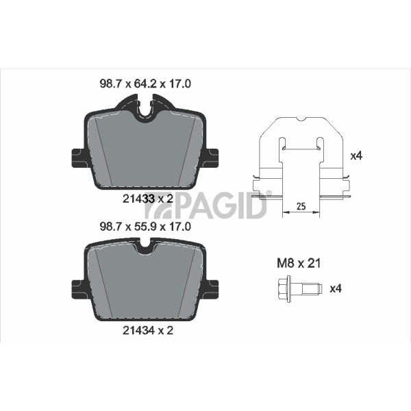 Sada brzdových destiček, kotoučová brzda PAGID T2887N