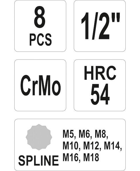 Sada nástrčných klíčů 1/2" Spline, 8ks