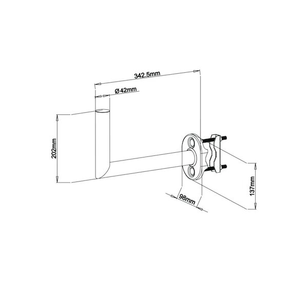 vzdálenost od zdi min. 350 mm, max. nosnost 45 kg, délka 250mm, výška 150 mm, průměr trubky: 42mm